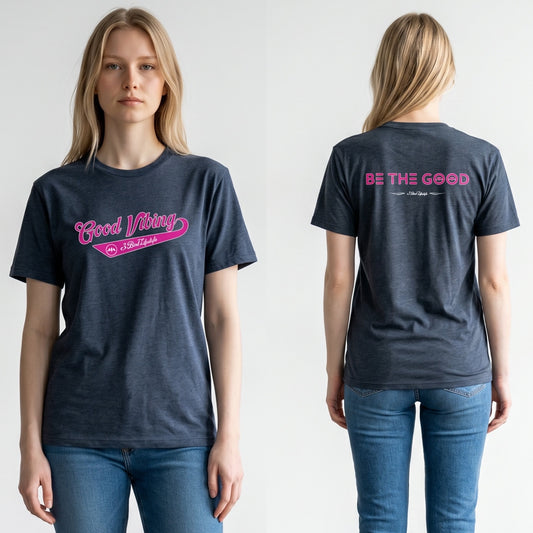 3 Bird Lifestyle T-Shirt • Good Vibing / Be The Good • Navy & Pink