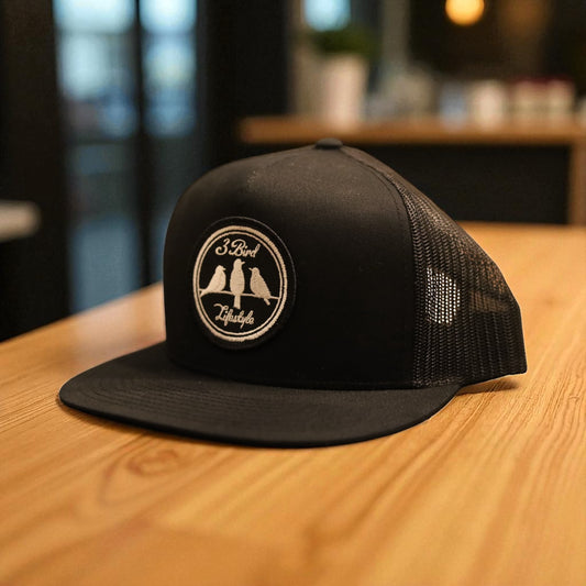 3 Bird Lifestyle Flat Bill Trucker • Black • 3 Birds Only Patch
