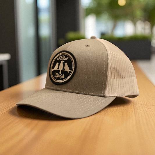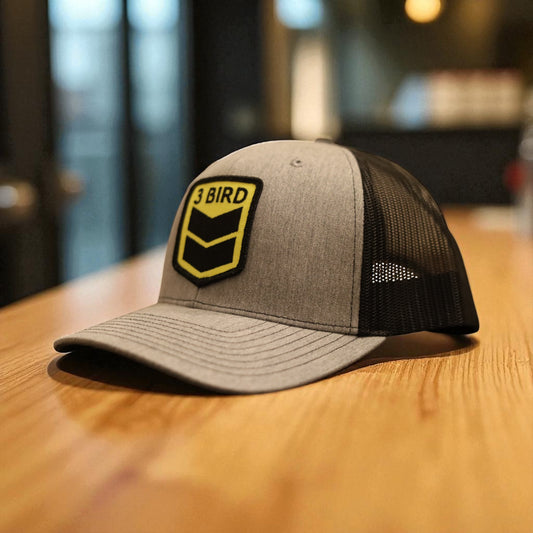 3 Bird Lifestyle Trucker Hat • Grey & Black • Embroidered Patch 3 Bird Only