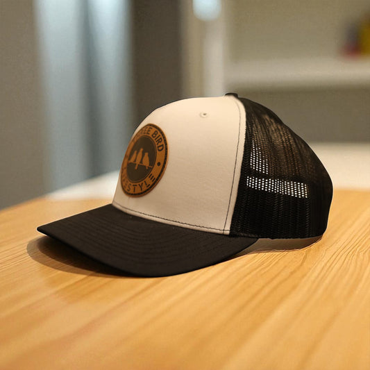 3 Bird Lifestyle Trucker Hat • White / Black • 3 Bird Lifestyle Leather Patch
