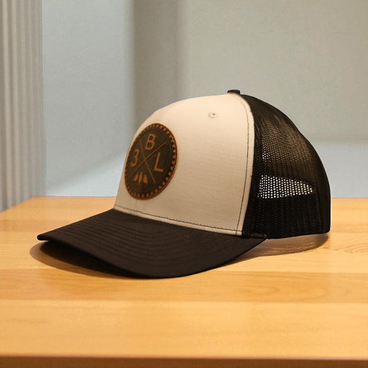 3 Bird Lifestyle Trucker Hat • White / Black • Leather Patch 3BLX