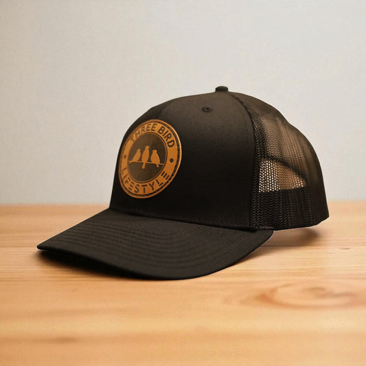 3 Bird Lifestyle Trucker Hat • Black • 3 Bird Lifestyle Leather Patch
