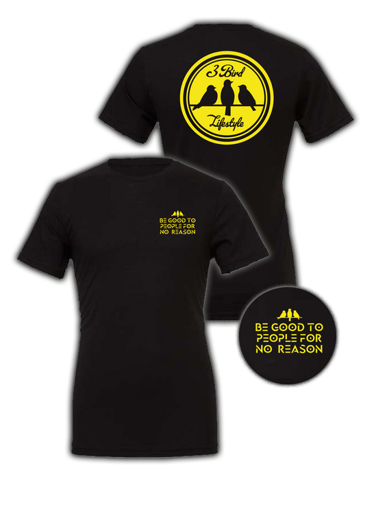 3 Bird Lifestyle T-Shirt • Be Good To People For No Reason • Black & Yellow