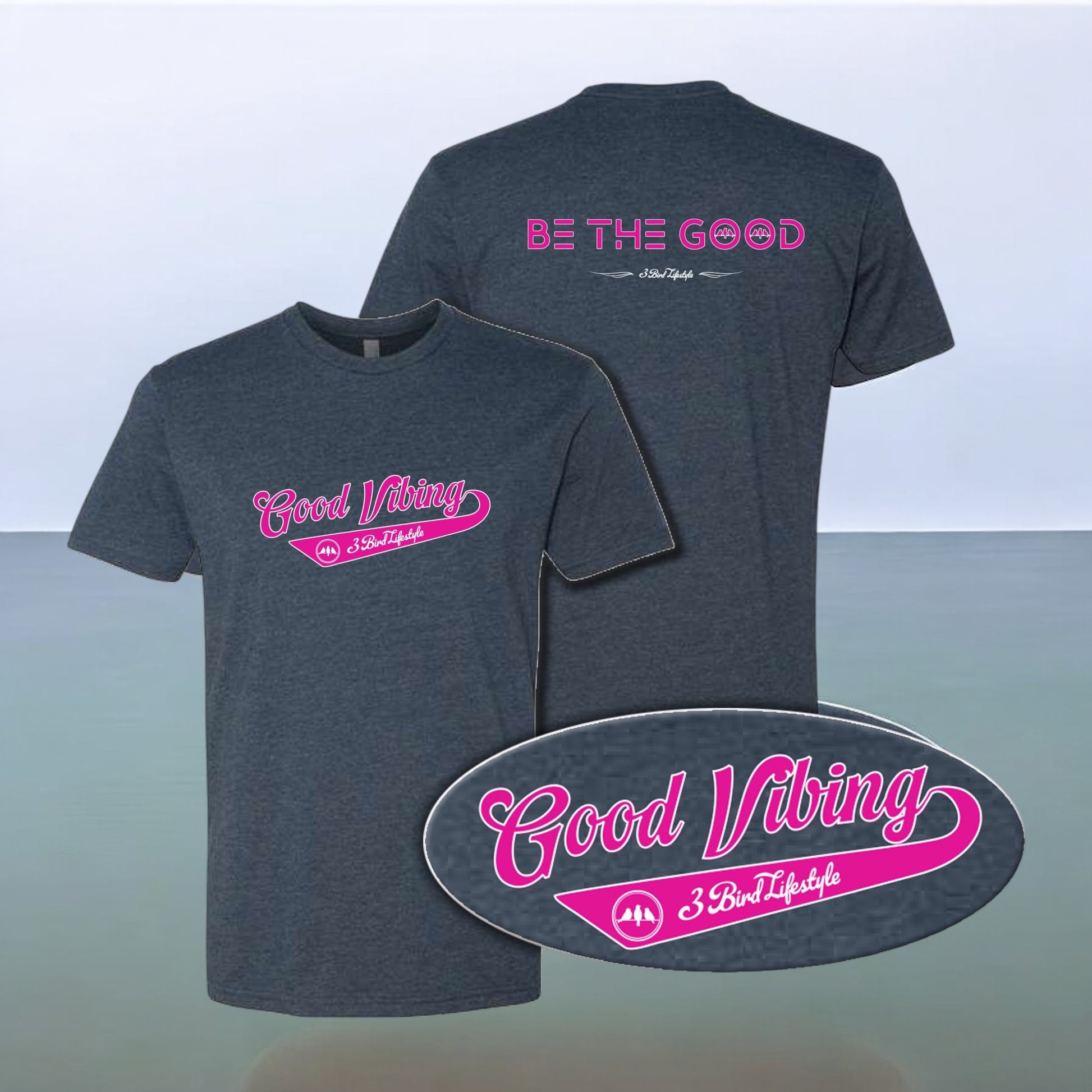 3 Bird Lifestyle T-Shirt • Good Vibing / Be The Good • Navy & Pink