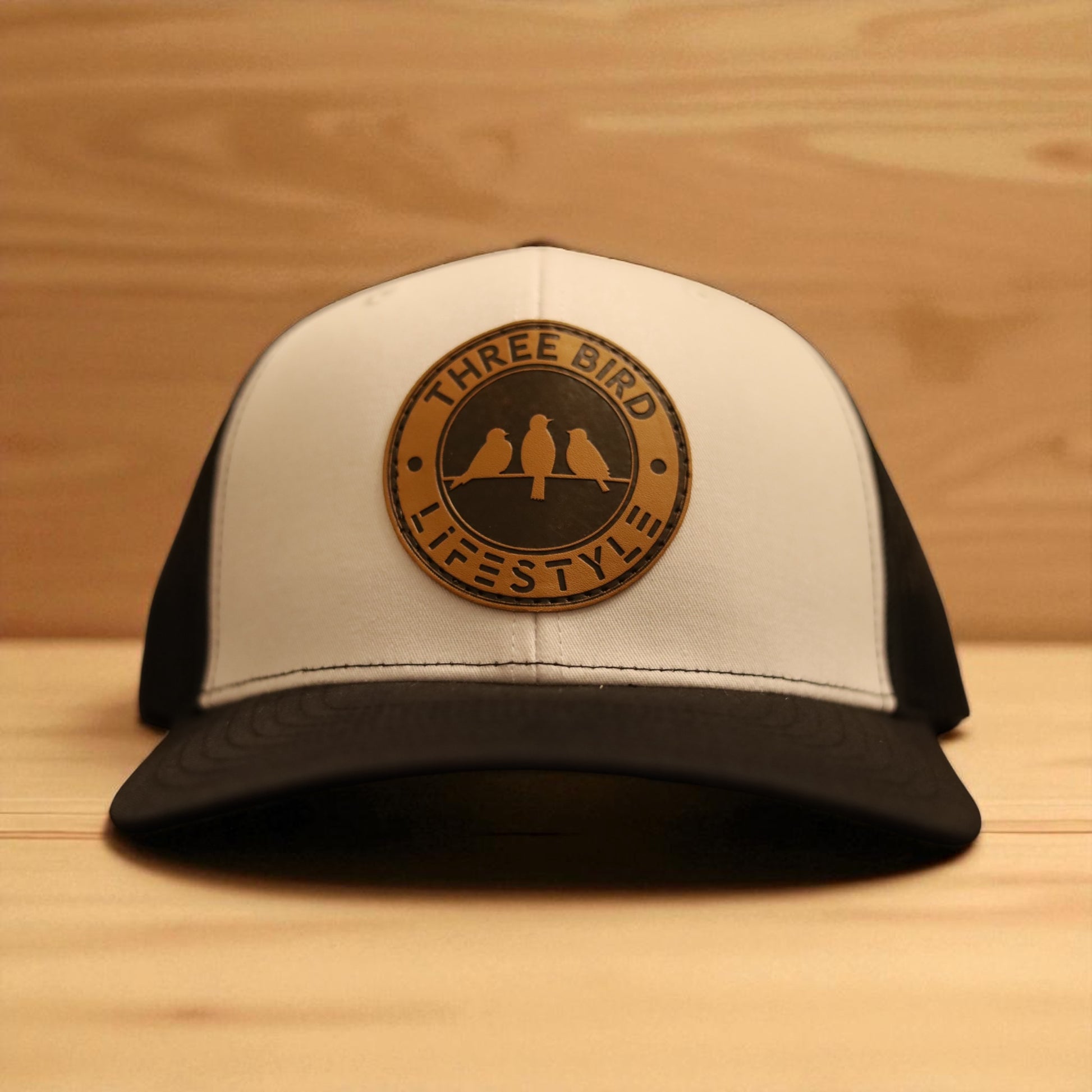 3 Bird Lifestyle Trucker Hat • White / Black • 3 Bird Lifestyle Leather Patch