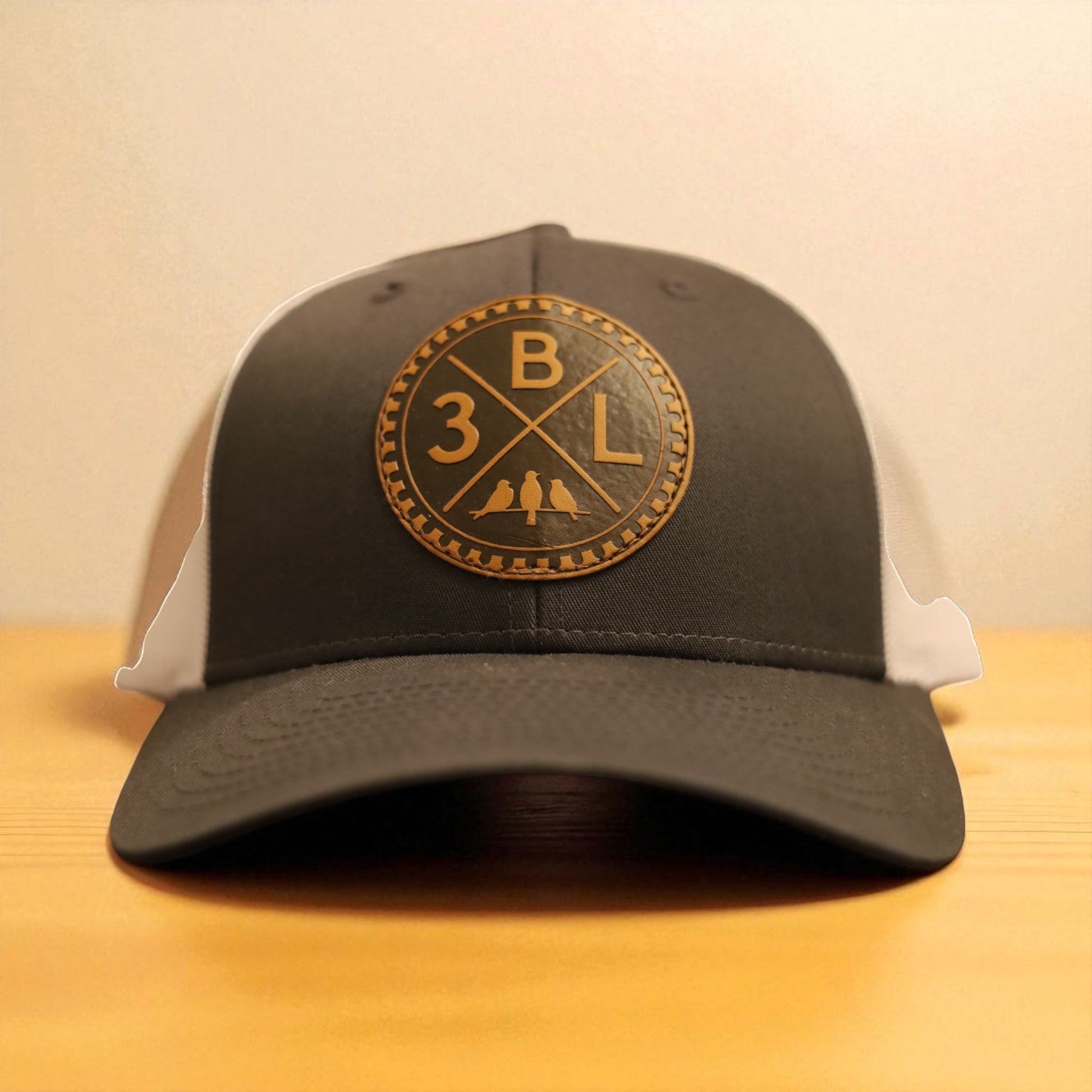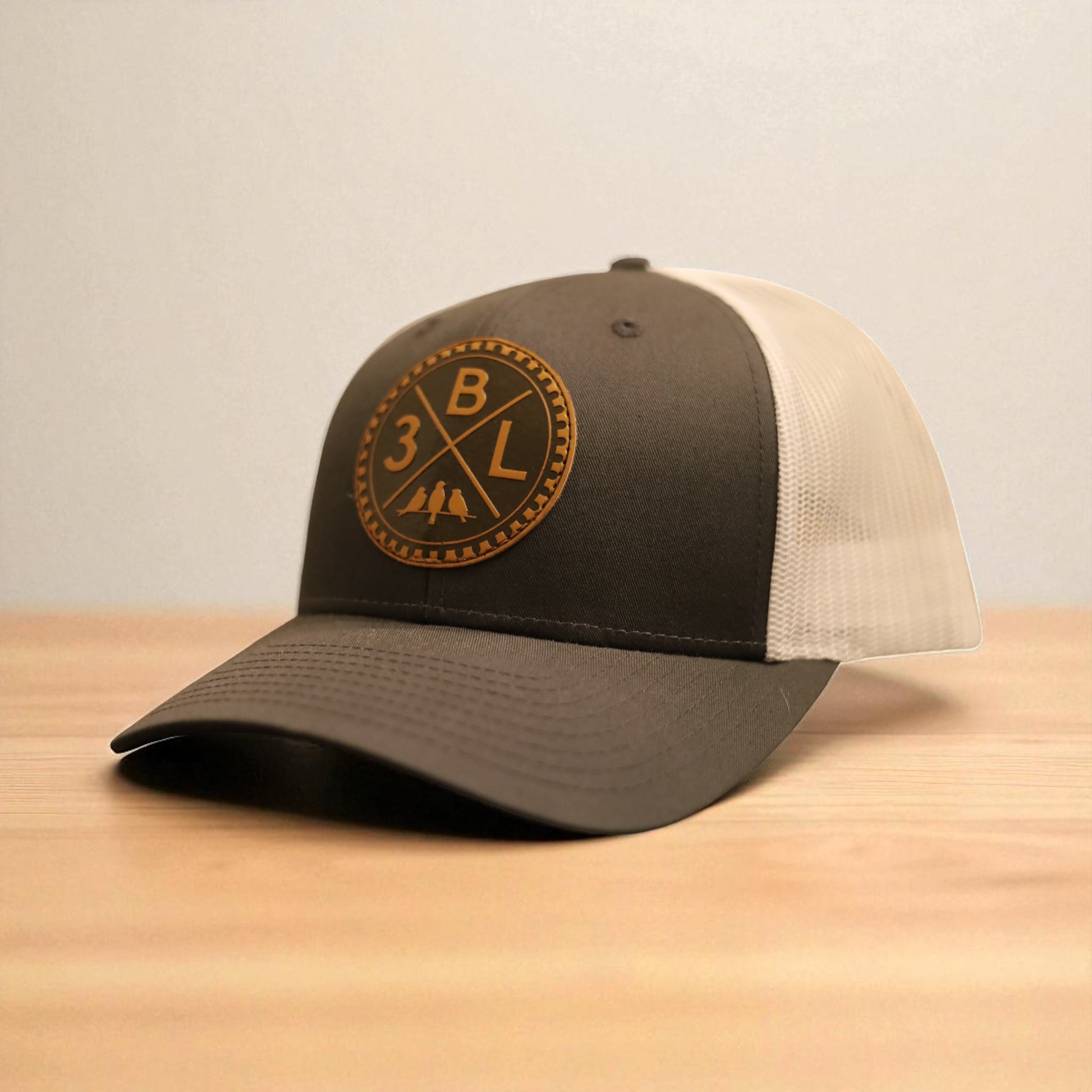 3 Bird Lifestyle Low Profile Trucker Hat • Dark Grey & White • Leather Patch 3BLX