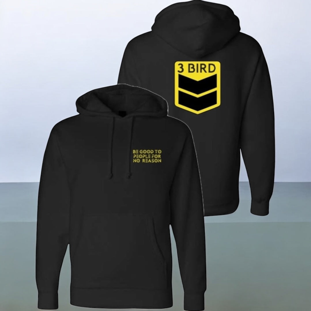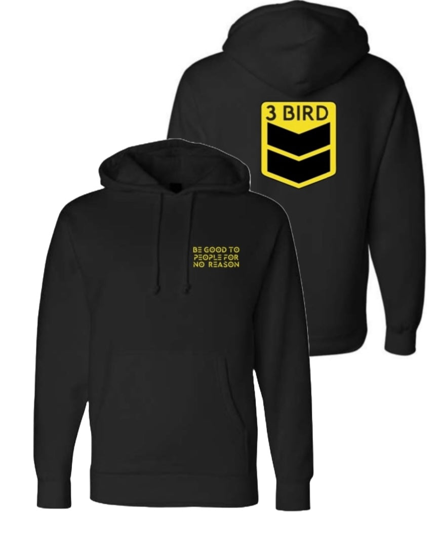 3 Bird Lifestyle Hoodie • Be Good To People For No Reason • Black and Yellow