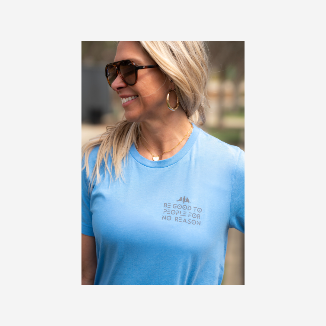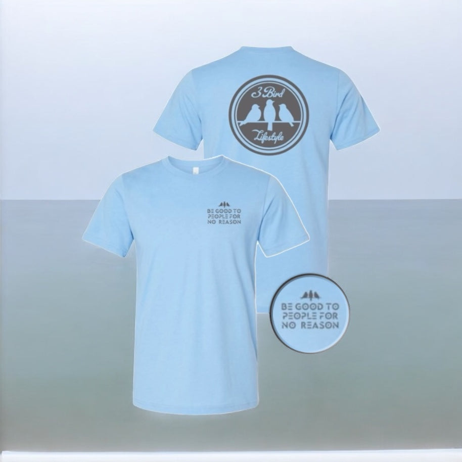 3 Bird Lifestyle T-Shirt • Be Good To People For No Reason • Light Blue & Charcoal