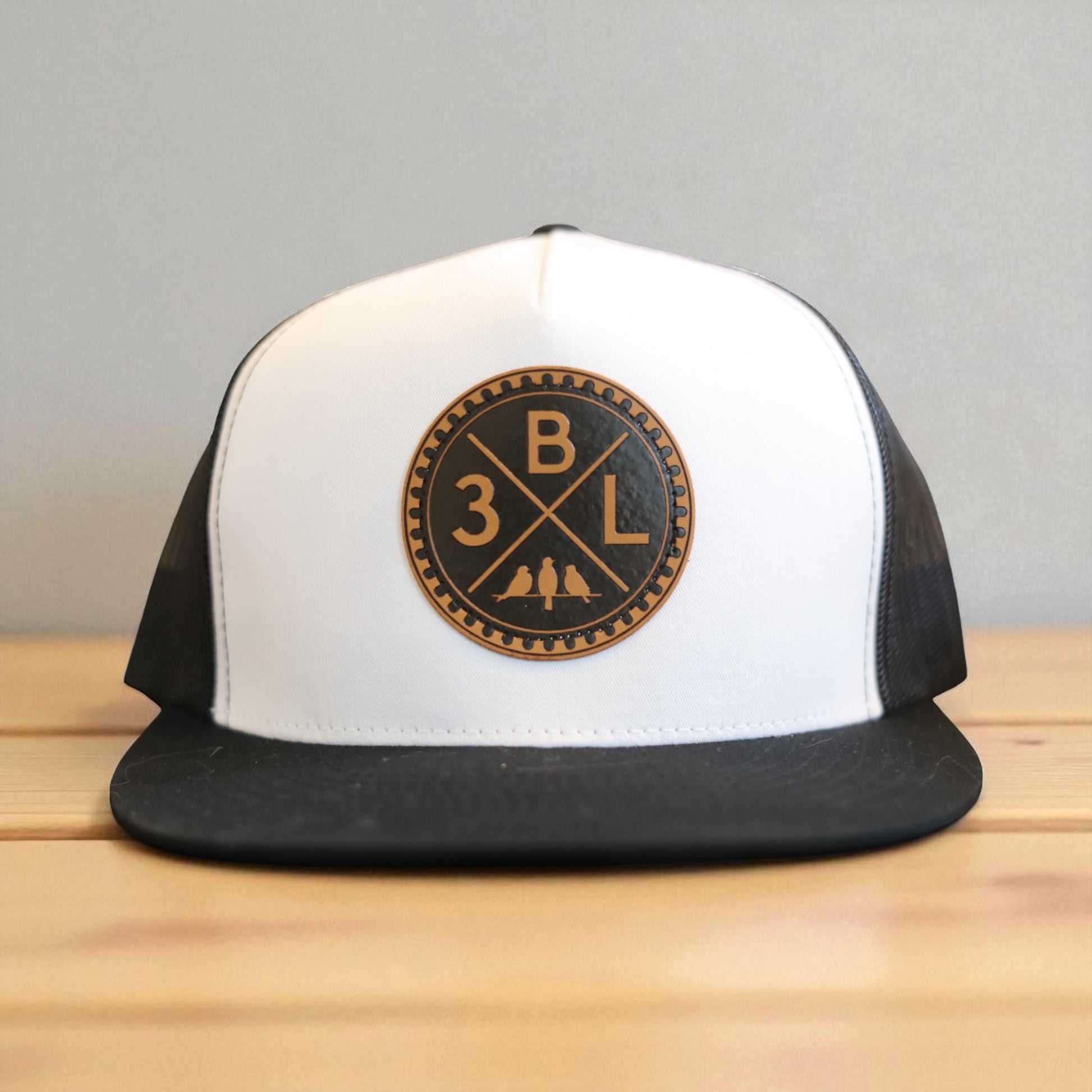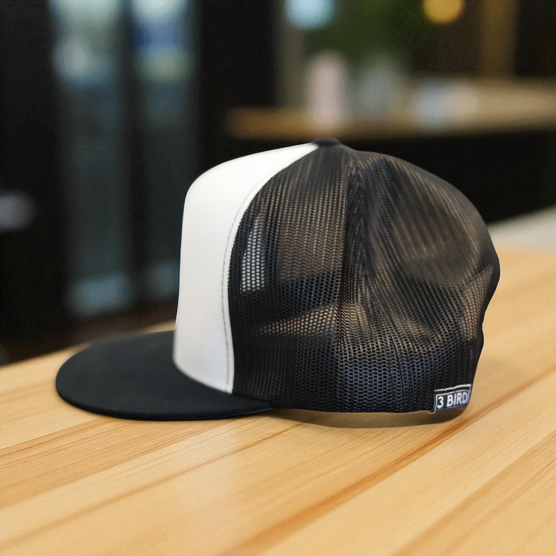 3 Bird Lifestyle Flat Bill Trucker • Black & White• 3BLX Leather Patch