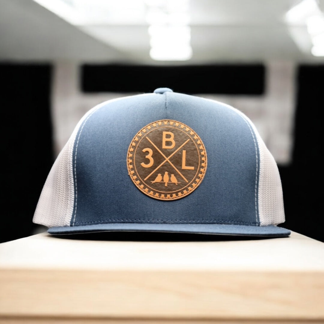3 Bird Lifestyle Flat Bill Trucker • Navy & White • 3BLX Leather Patch