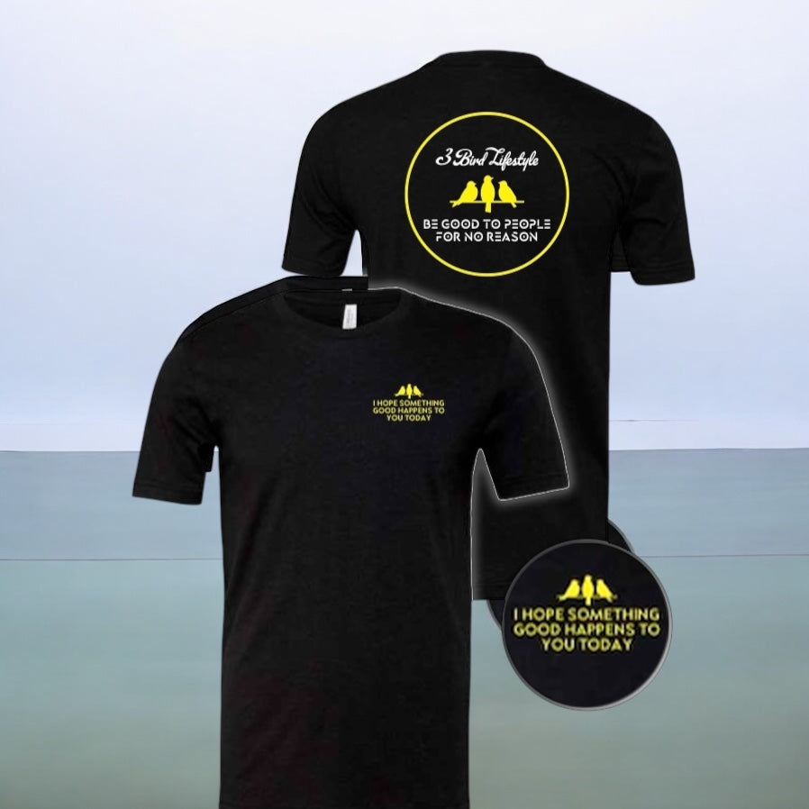 3 Bird Lifestyle T-Shirt • I Hope Something Good Happens To You Today • Black & Yellow