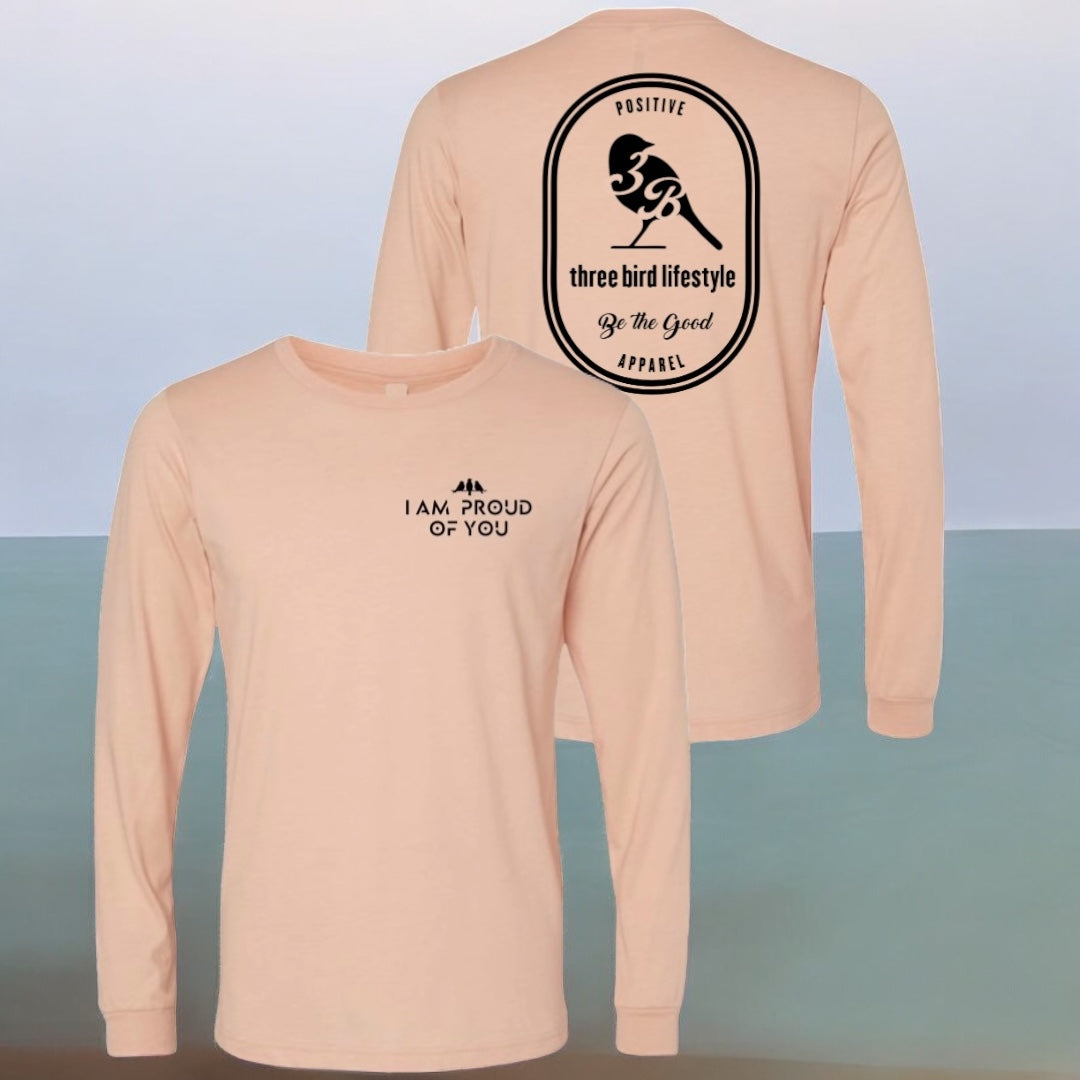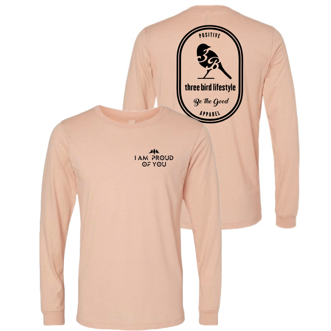 3 Bird Lifestyle Long Sleeve T-Shirt • I Am Proud Of You • Heather Peach