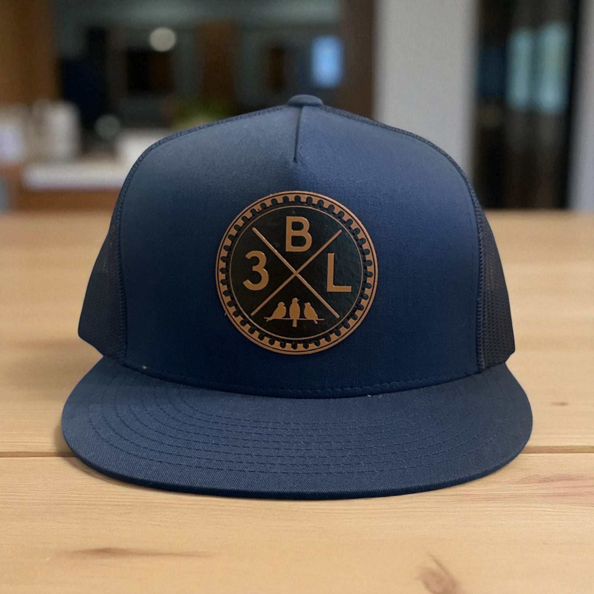 3 Bird Lifestyle Flat Bill Trucker • Navy • 3BLX Leather Patch