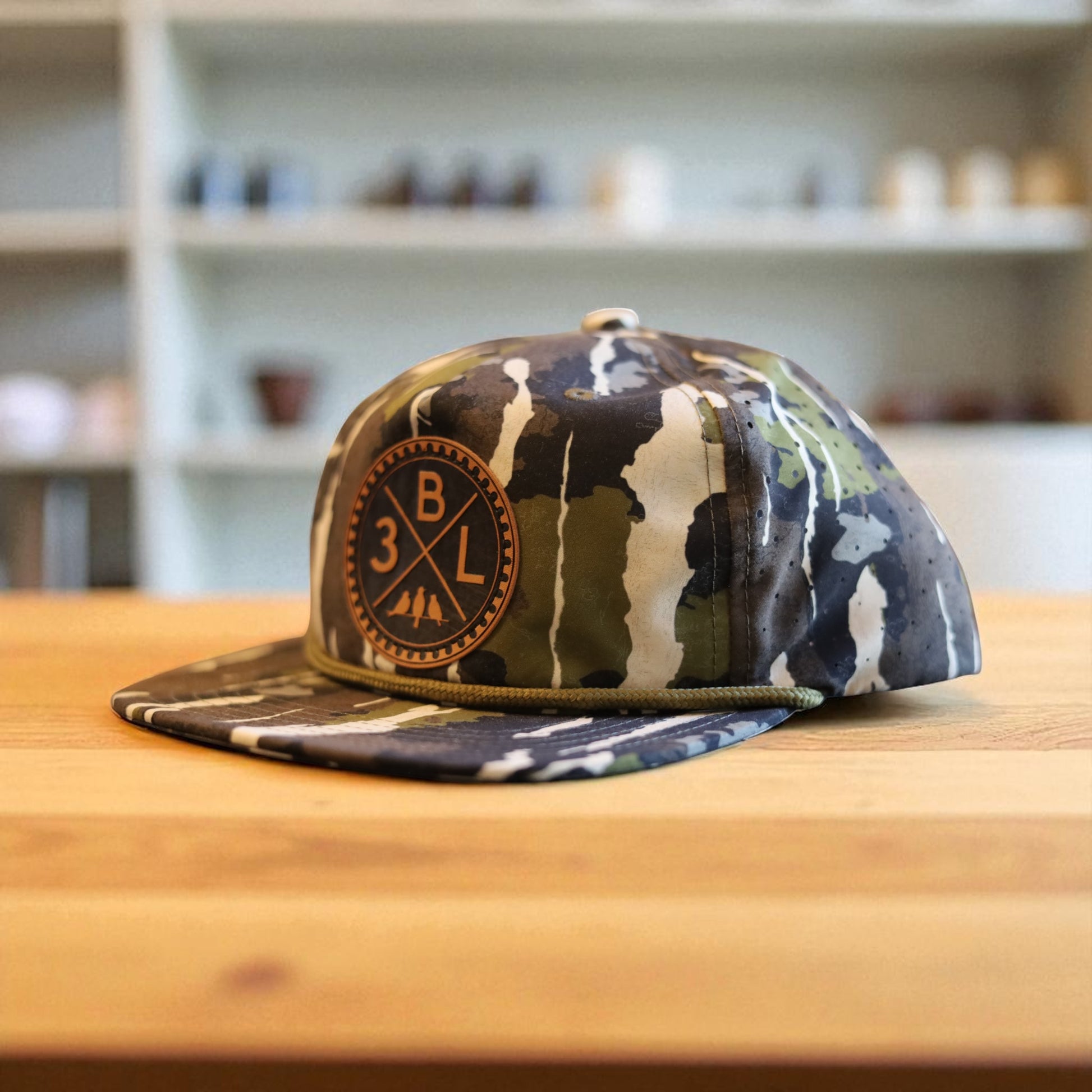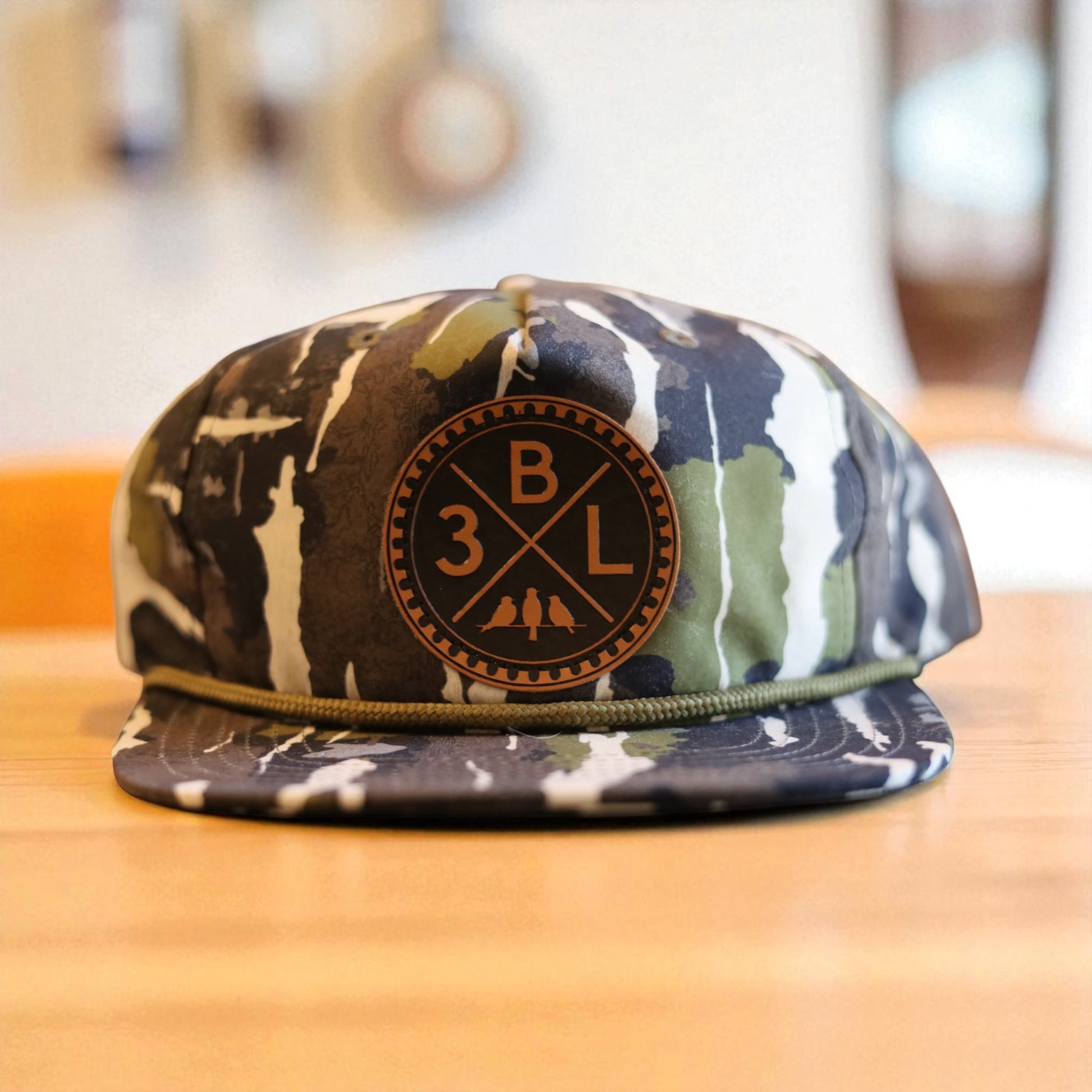 3 Bird Lifestyle Perforated Rope Hat •Burnt Umber & Duck Blind• 3BLX Leather Patch