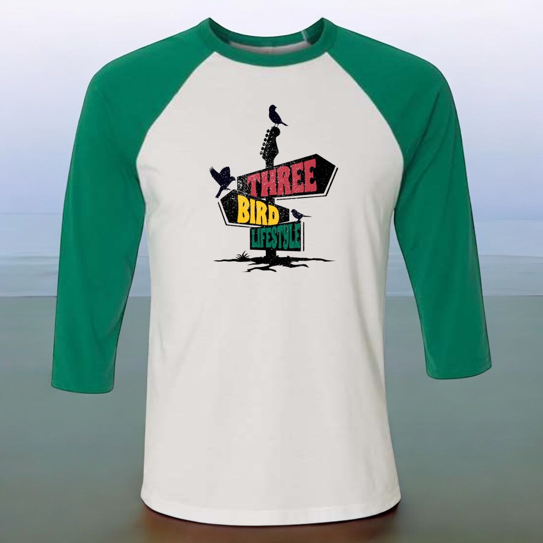 3 Bird Lifestyle Raglan • Three-Quarter Sleeve Baseball Tee • Green & White