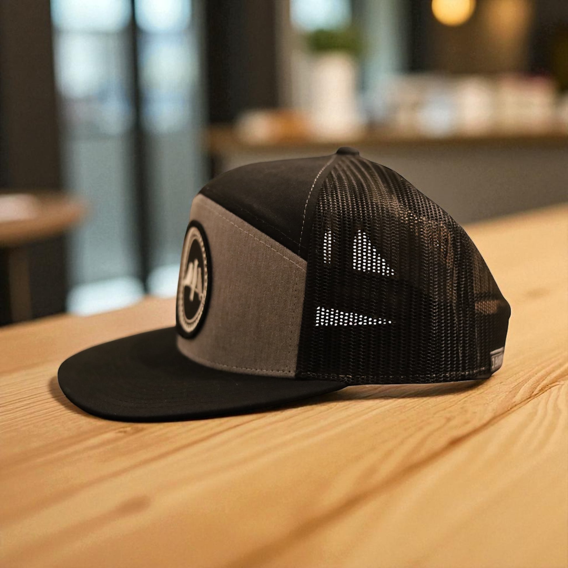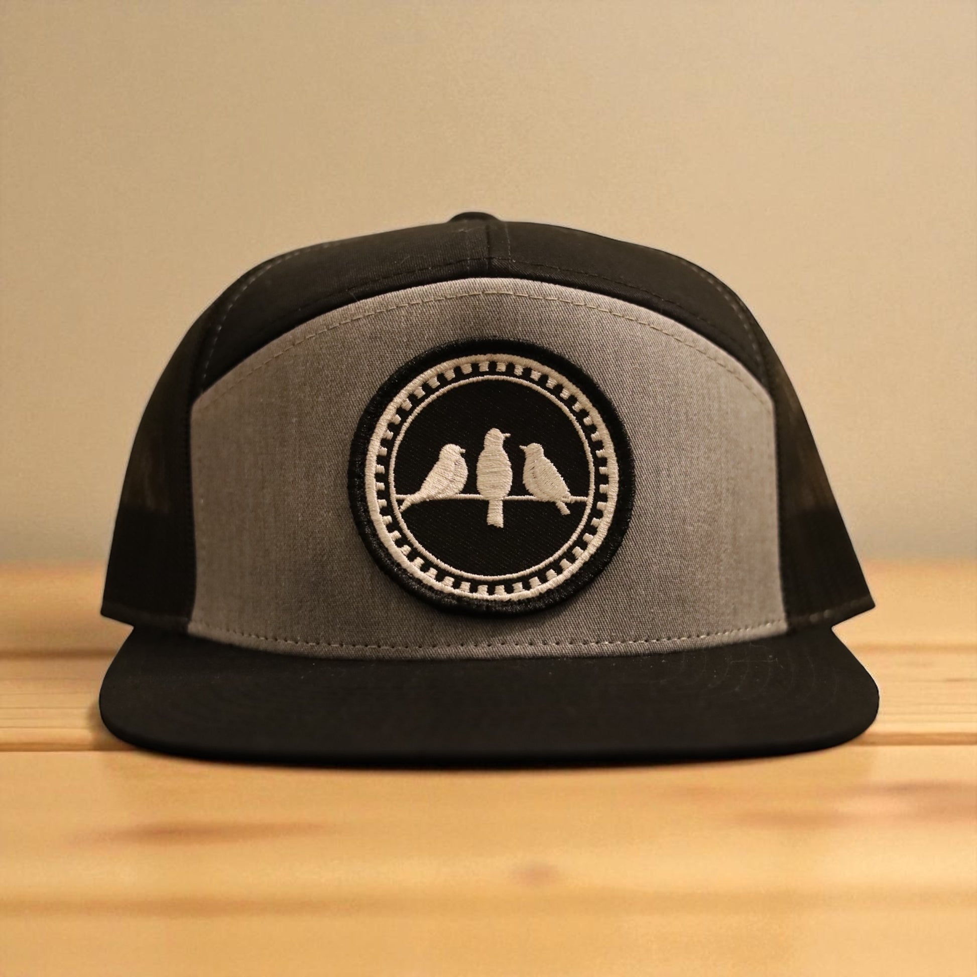 3 Bird Lifestyle Seven-Panel Trucker • Heather Grey & Black • 3 Birds Only Patch