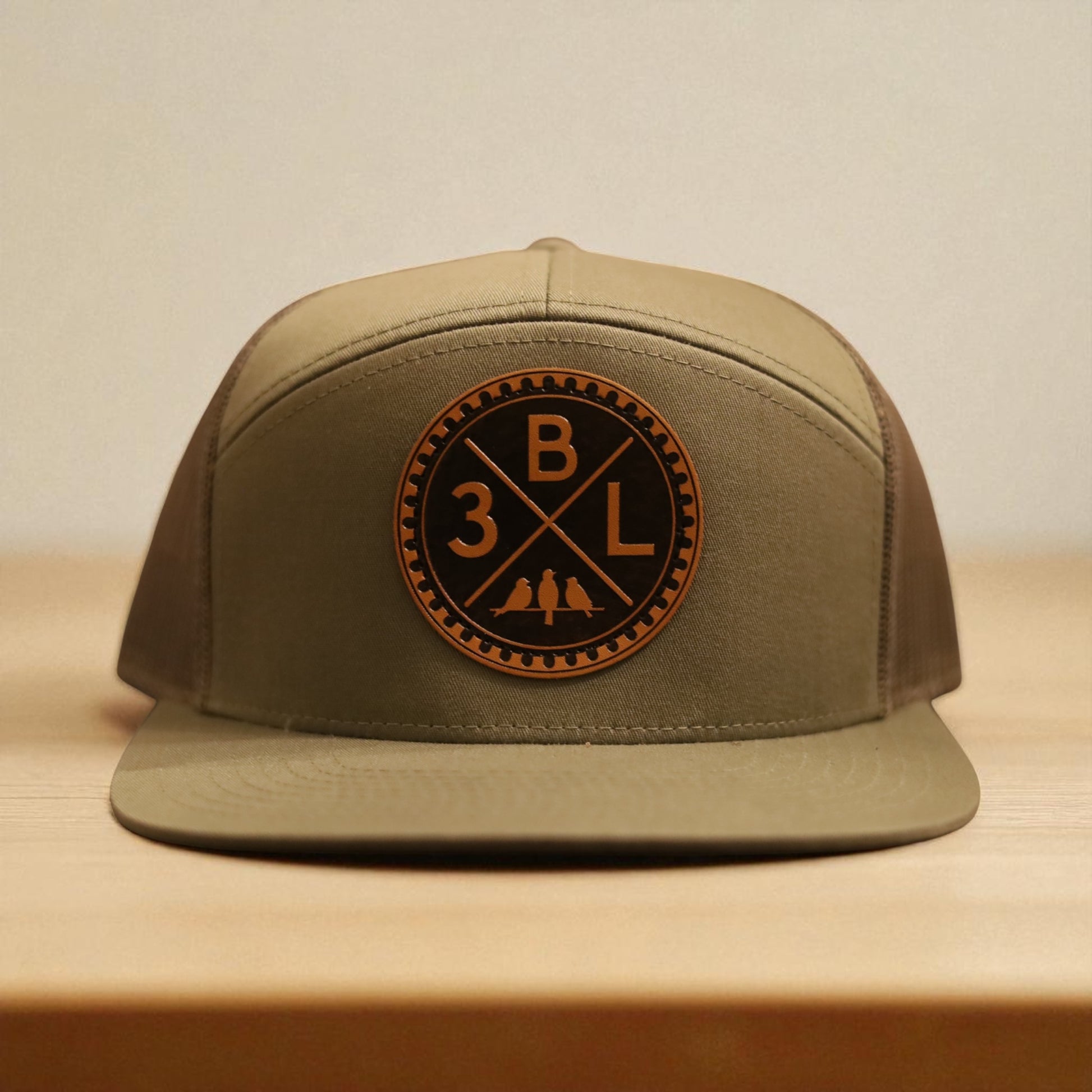 3 Bird Lifestyle Seven-Panel Trucker • Loden Green• 3BLX Leather Patch