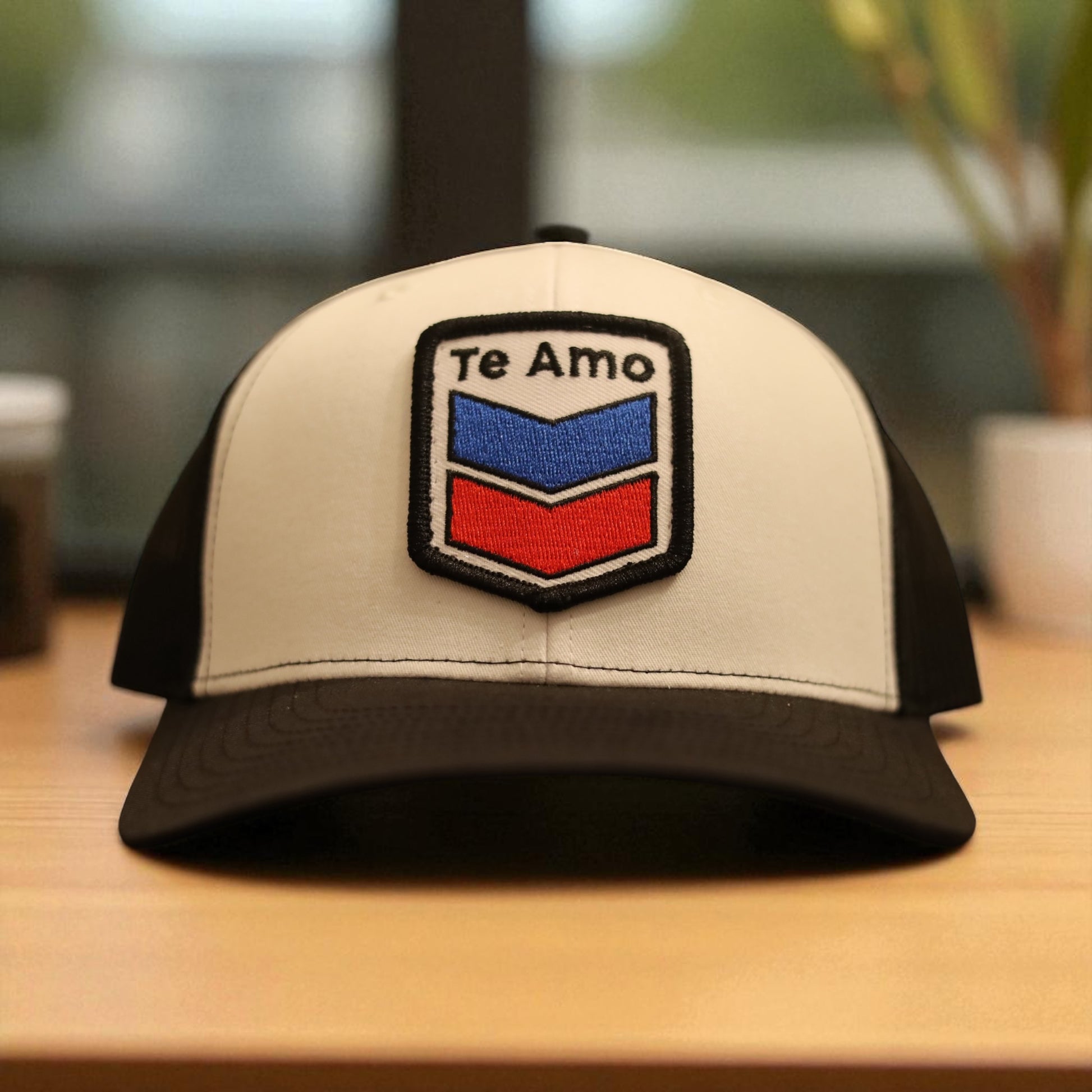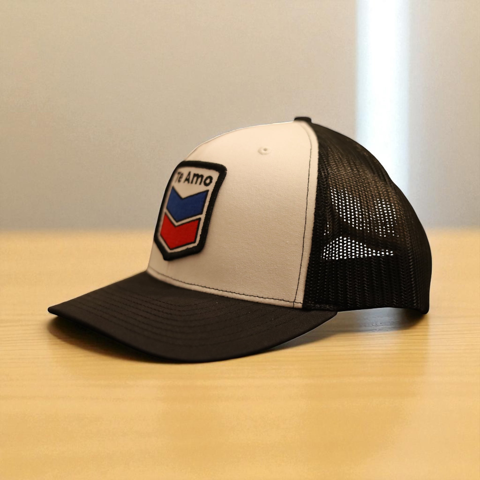 3 Bird Lifestyle Trucker Hat • White / Black • Te Amo (Blue & Red) Patch
