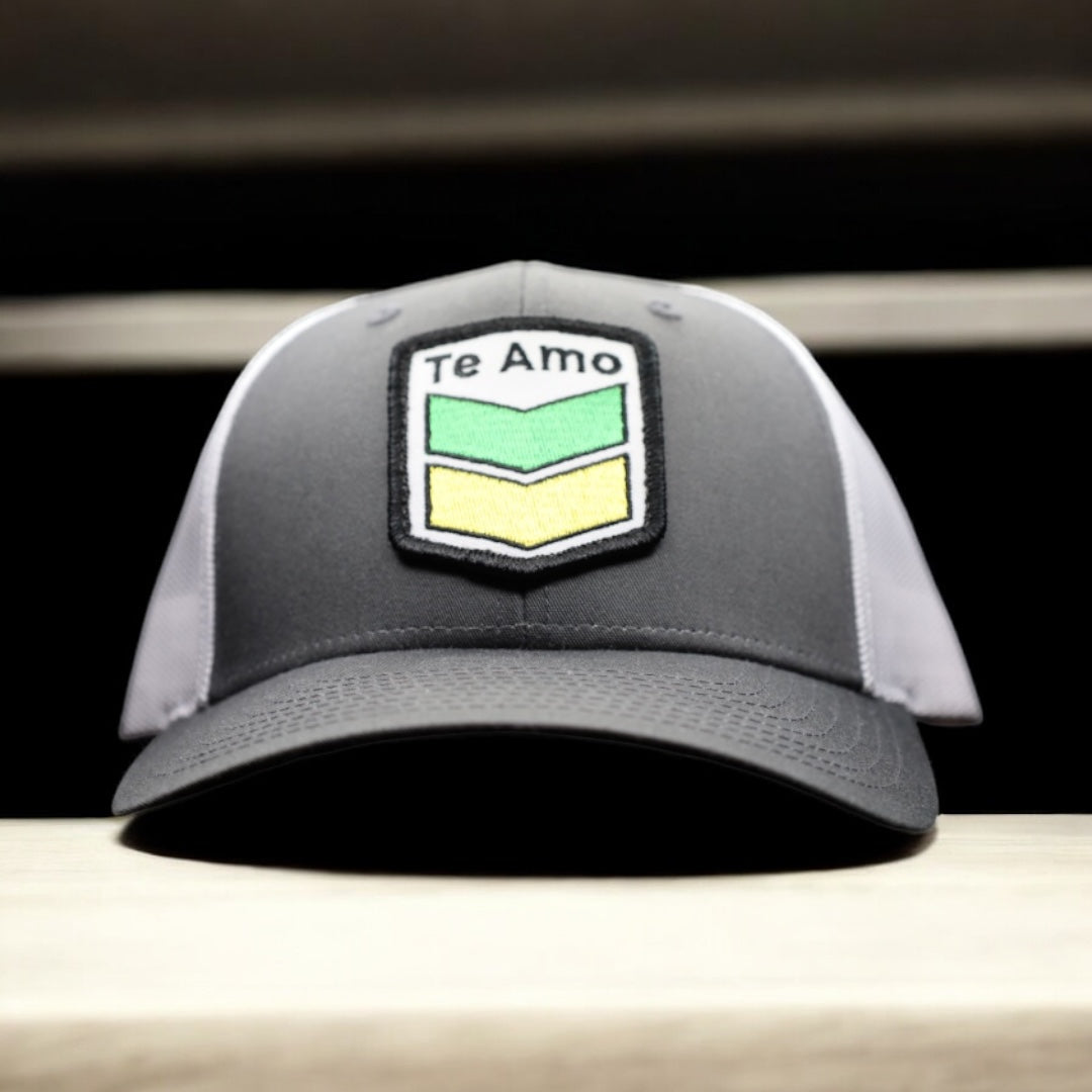 3 Bird Lifestyle Low Profile Trucker Hat • Dark Grey & White • Te Amo (Jamaica) Patch