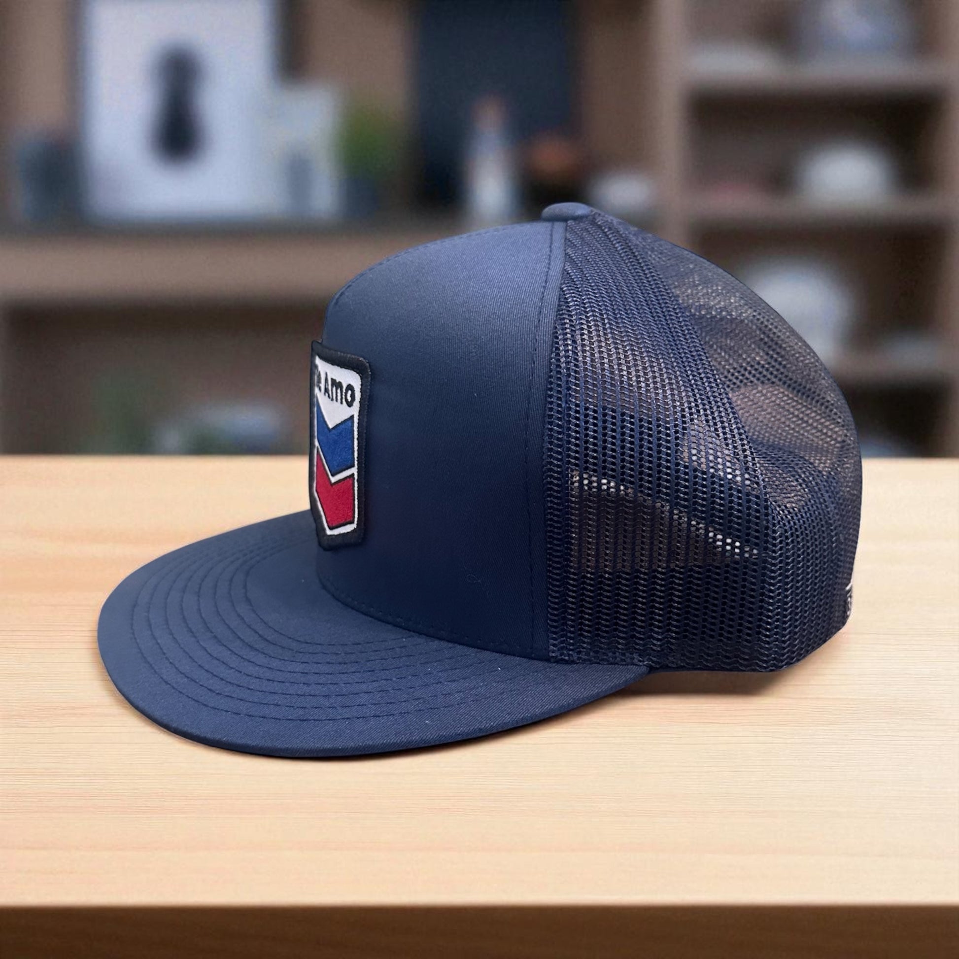 3 Bird Lifestyle Flat Bill Trucker • Navy • Te Amo (Blue & Red) Patch