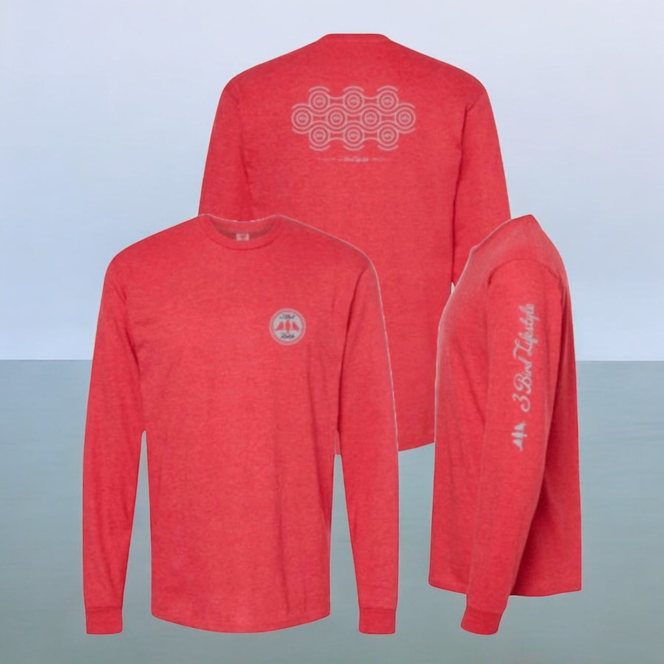 3 Bird Lifestyle Long Sleeve T-Shirt • Perpetual Motion• Heather Red & Silver