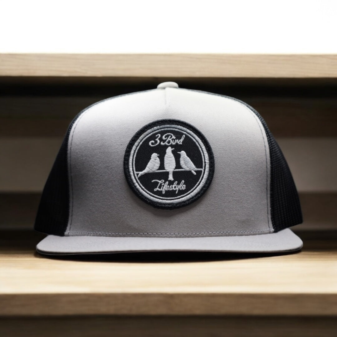 3 Bird Lifestyle Flat Bill Trucker • Silver & Black • 3 Bird Lifestyle Patch