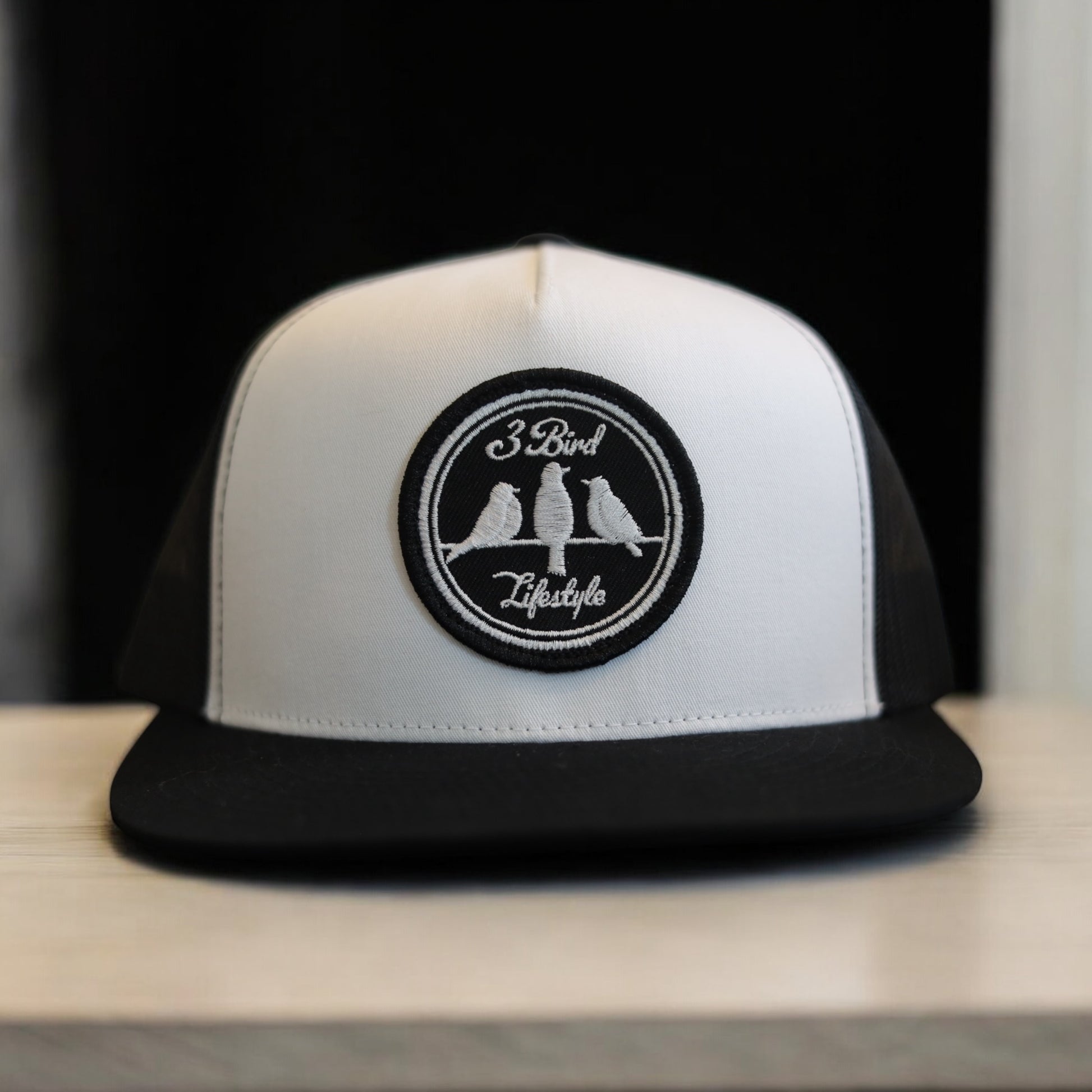 3 Bird Lifestyle Flat Bill Trucker • Black & White• 3 Bird Lifestyle Patch