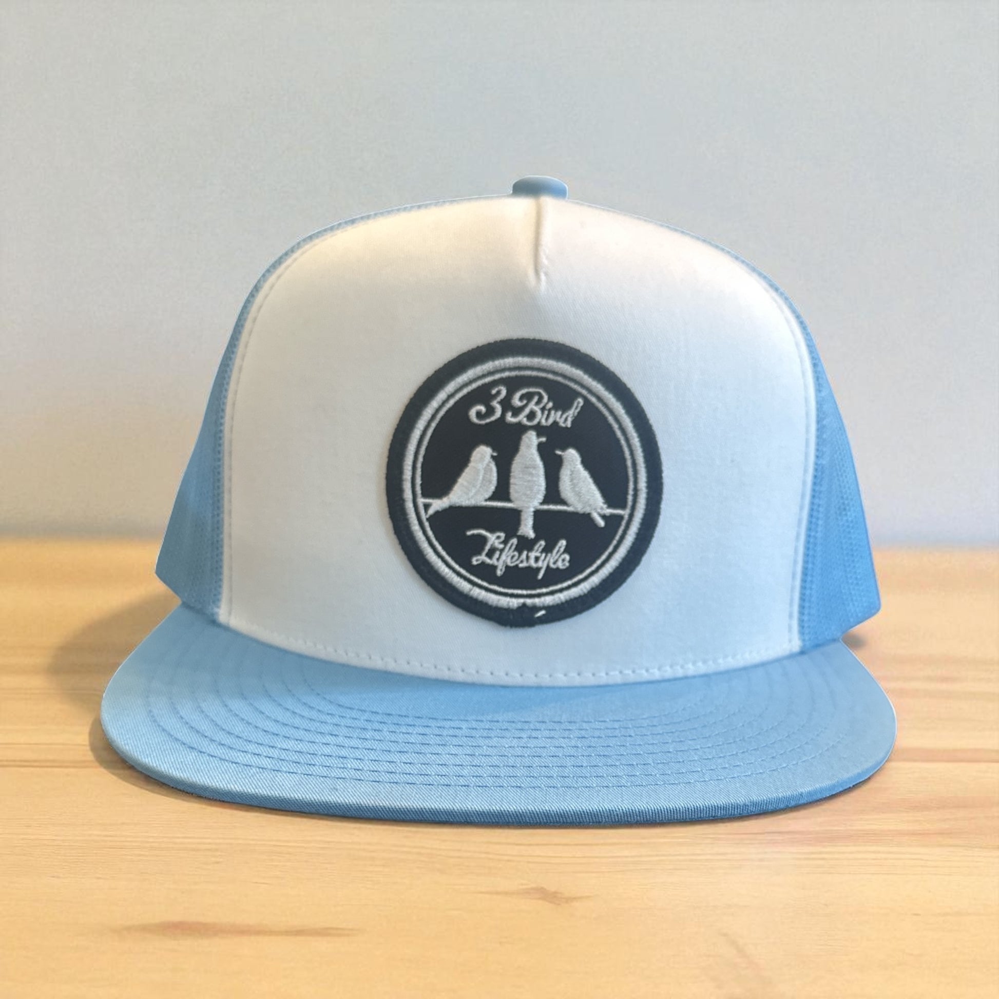 3 Bird Lifestyle Flat Bill Trucker •Carolina Blue & White • 3 Bird Lifestyle Patch