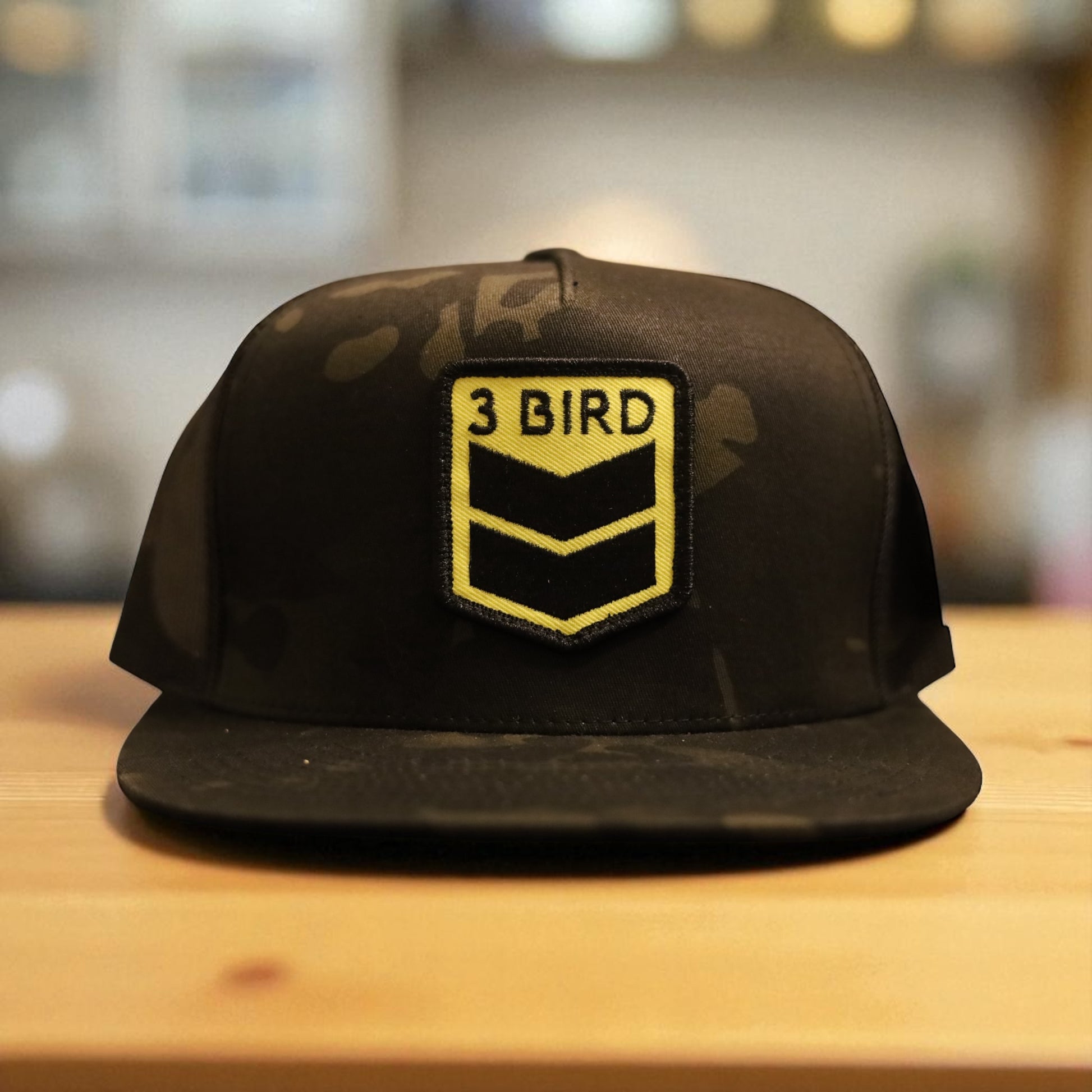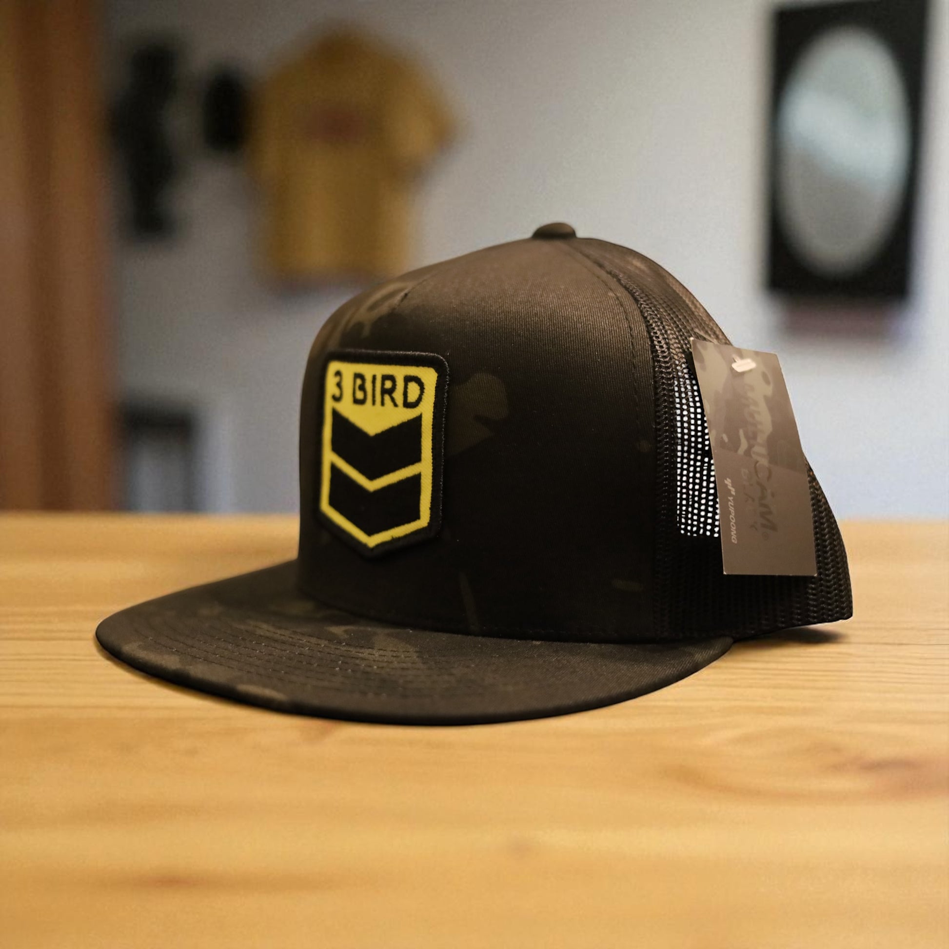 3 Bird Lifestyle Flat Bill Trucker •Multicam Black & Black • 3 Bird Patch