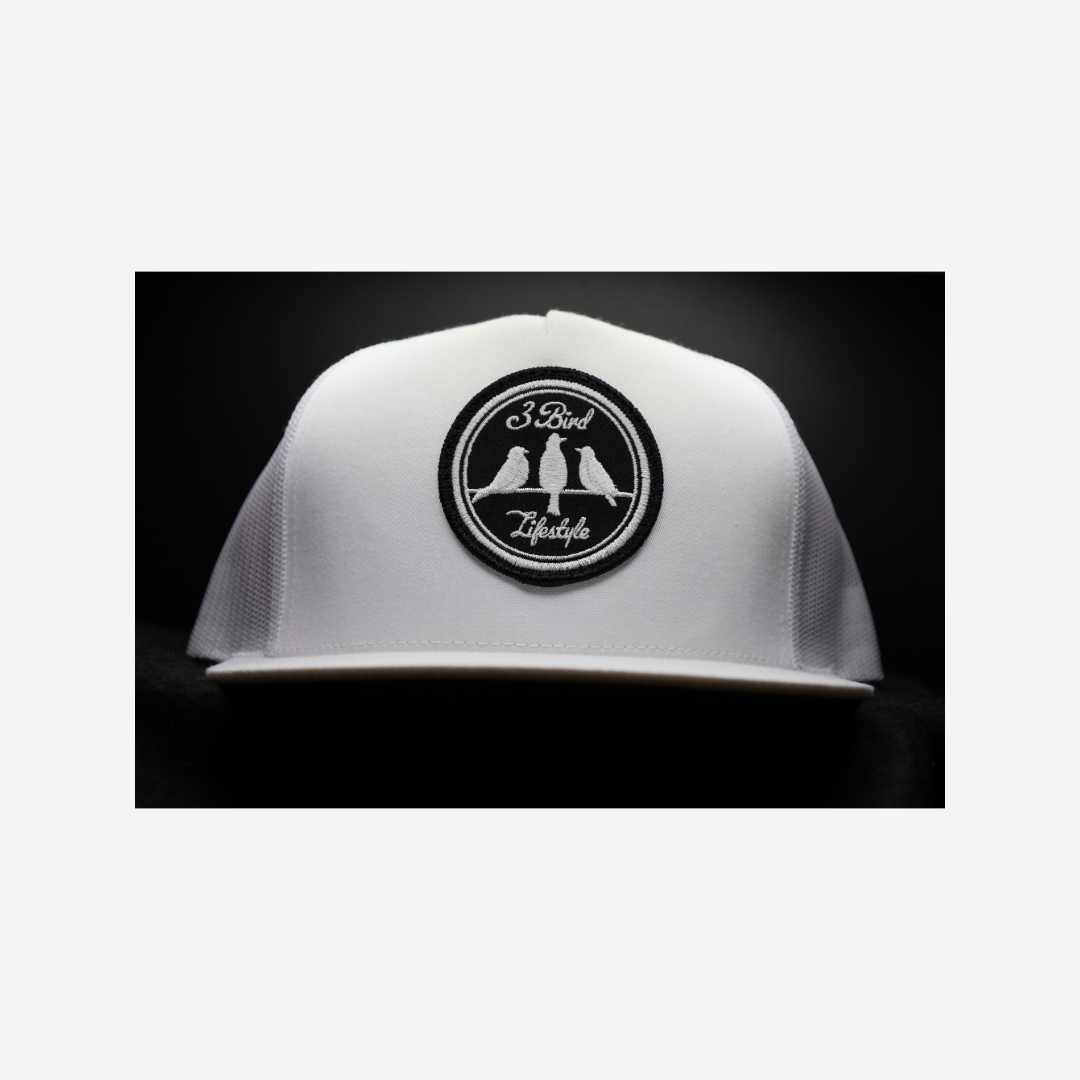 3 Bird Lifestyle Flat Bill Trucker •White • 3 Bird Lifestyle Patch