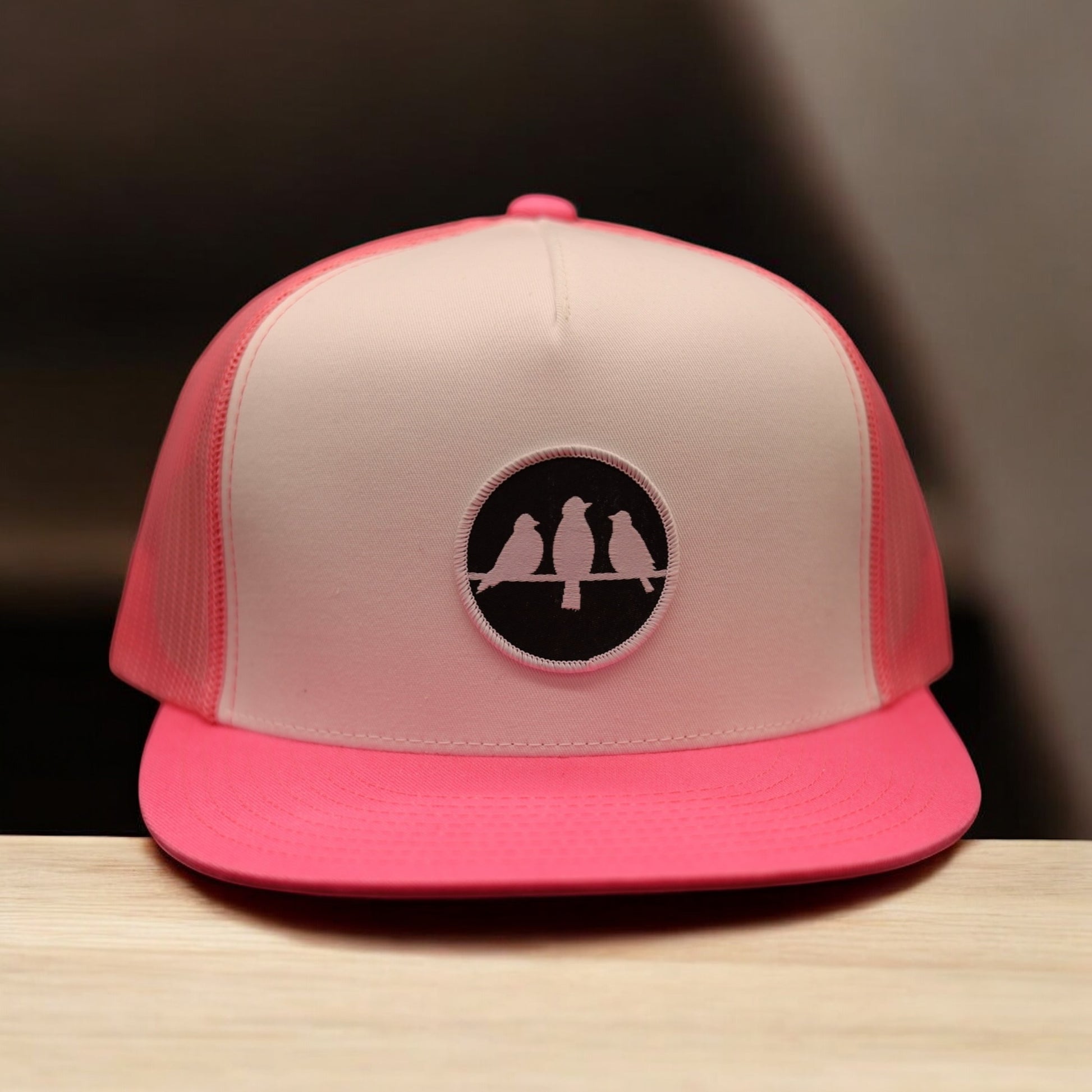 3 Bird Lifestyle Flat Bill Trucker • Pink & White• Birds Only Small Patch