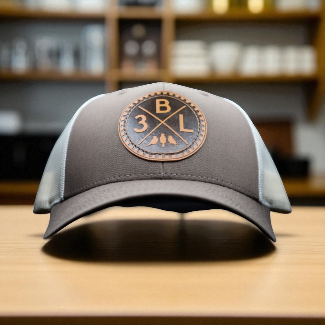 3 Bird Lifestyle Low Profile Trucker Hat • Brown/White • 3BLX Leather Patch
