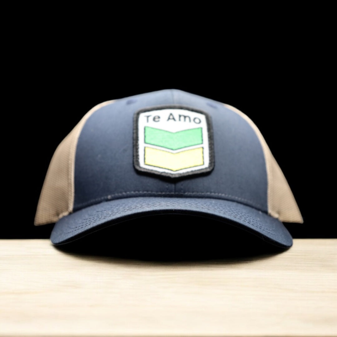 3 Bird Lifestyle Low Profile Trucker Hat • Navy / Khaki • Te Amo (Jamaica) Patch