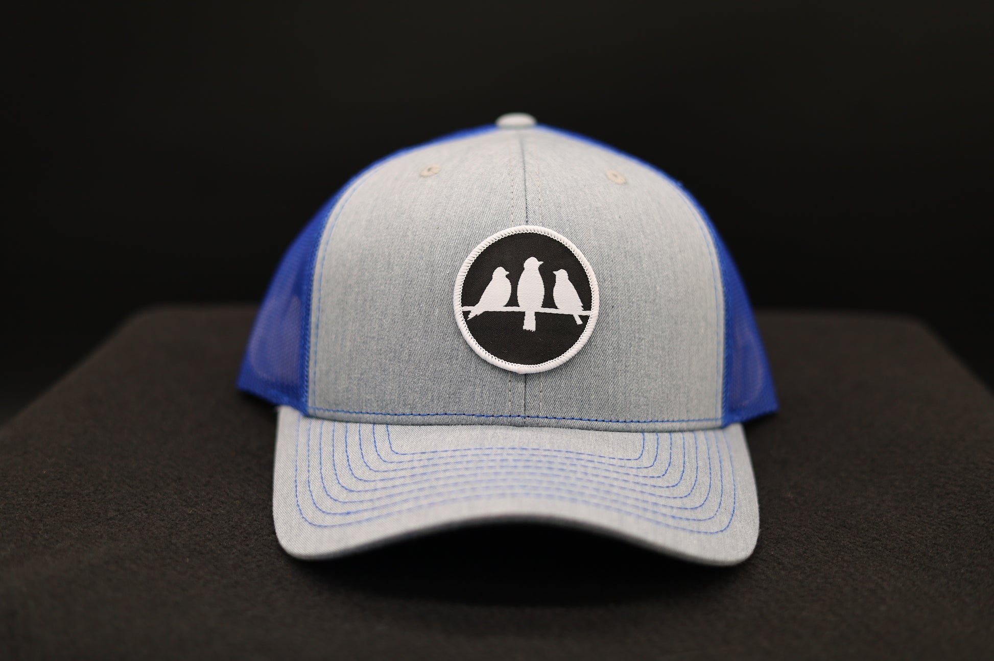3 Bird Lifestyle Trucker Hat • Heather Grey & Royal • Birds Only Small Patch