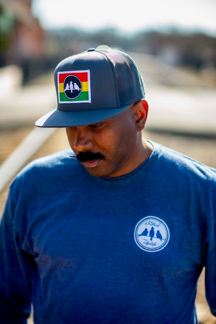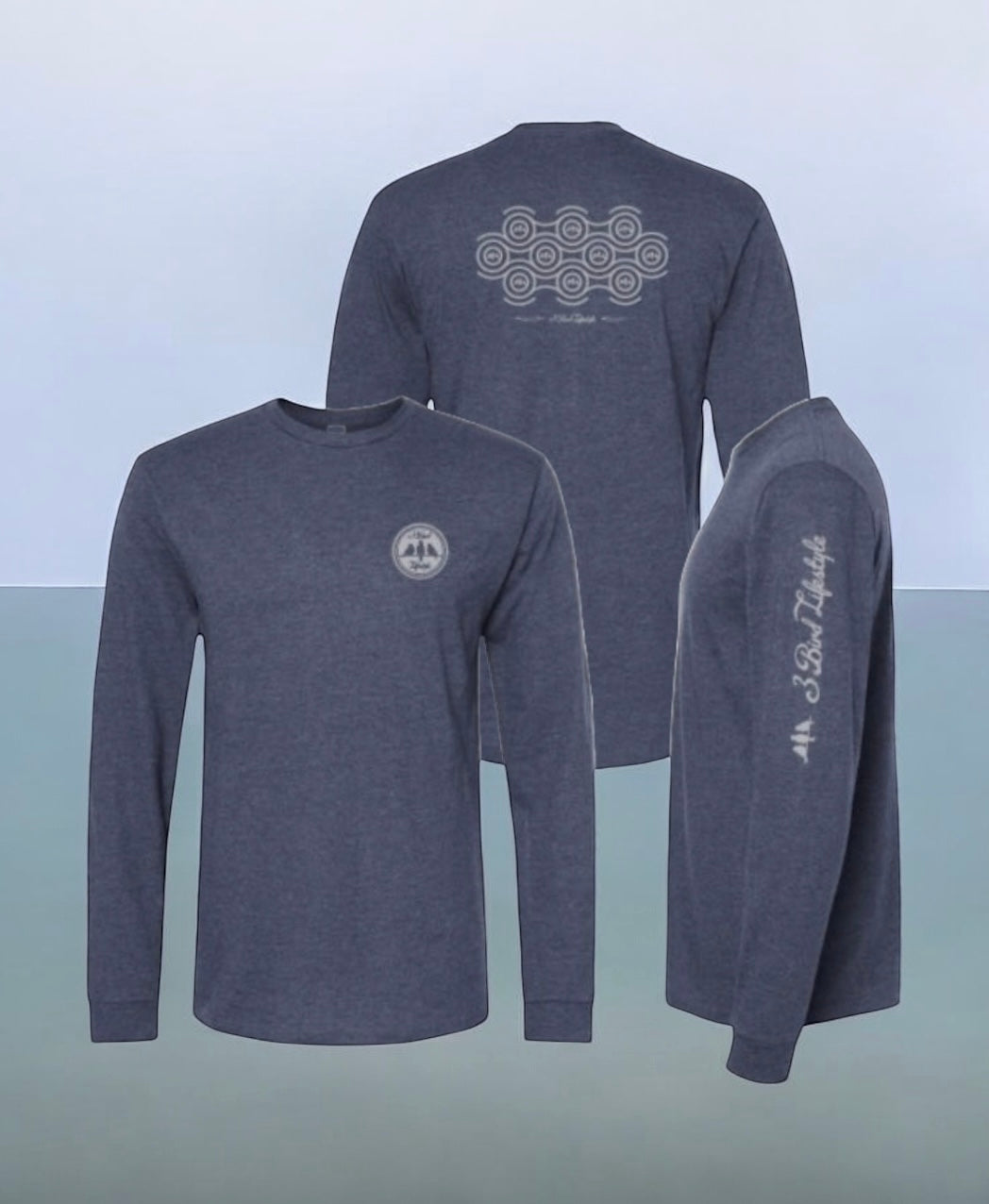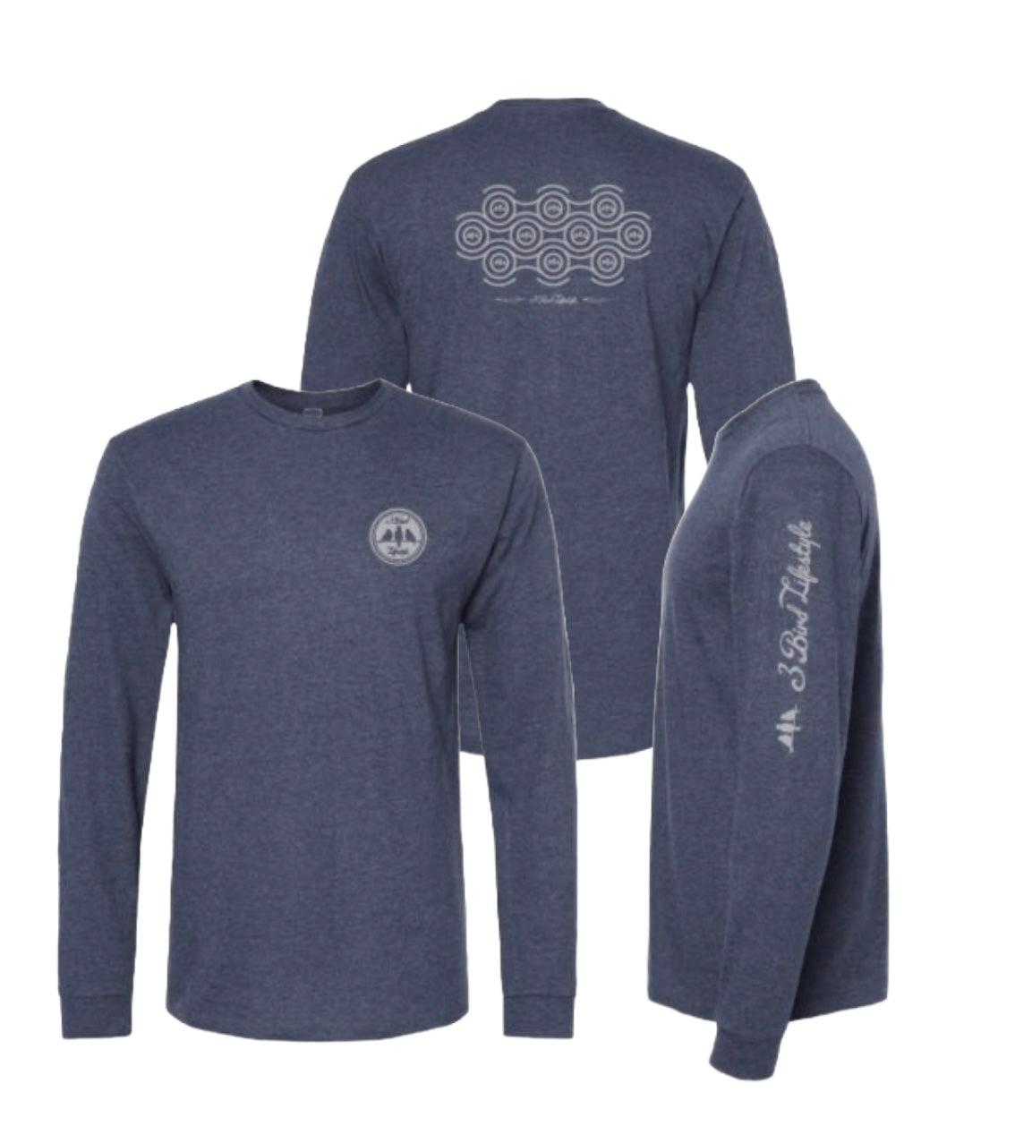 3 Bird Lifestyle Long Sleeve T-Shirt • Perpetual Motion• Heather Denim & Silver