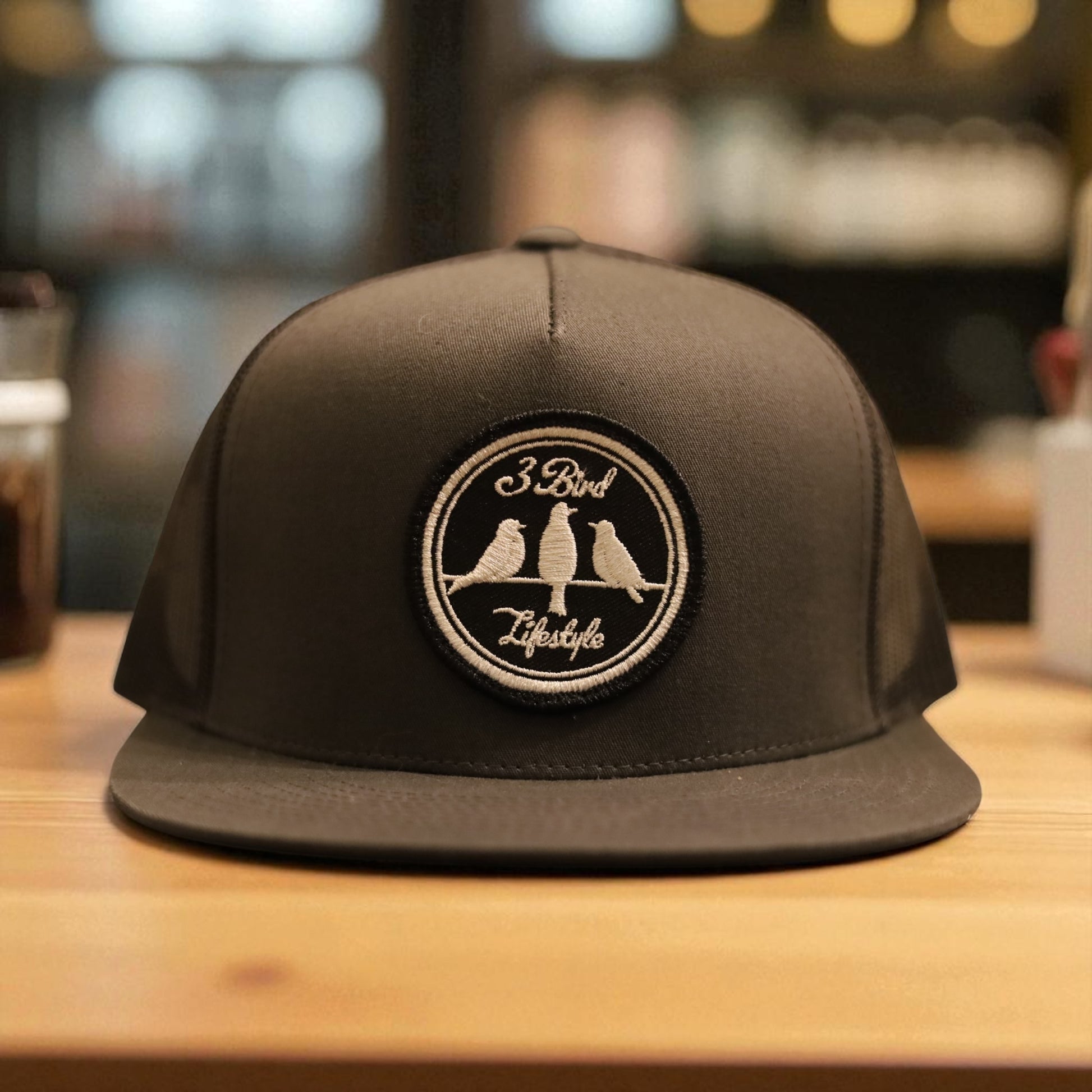 3 Bird Lifestyle Flat Bill Trucker • Charcoal • 3 Bird Lifestyle Patch