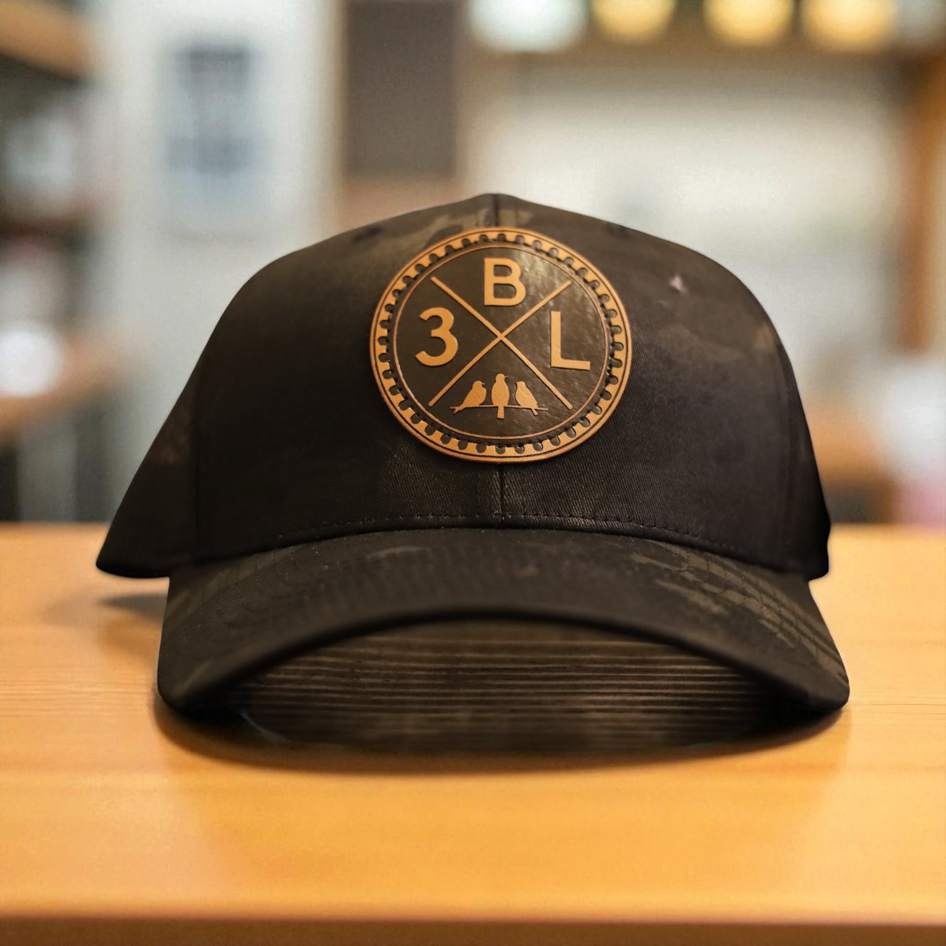 3 Bird Lifestyle Trucker Hat •Multicam Black & Black • Leather Patch 3BLX
